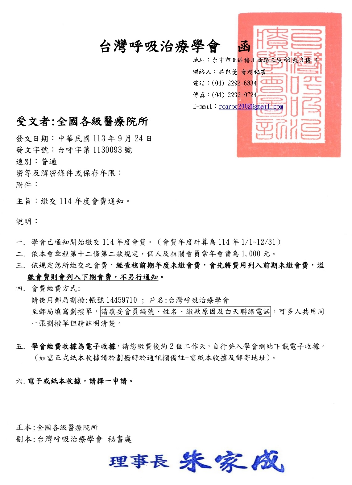 說 明:因應會員反應,提早通知繳交114年會費,以利跨年度後可順利登利入學會網站